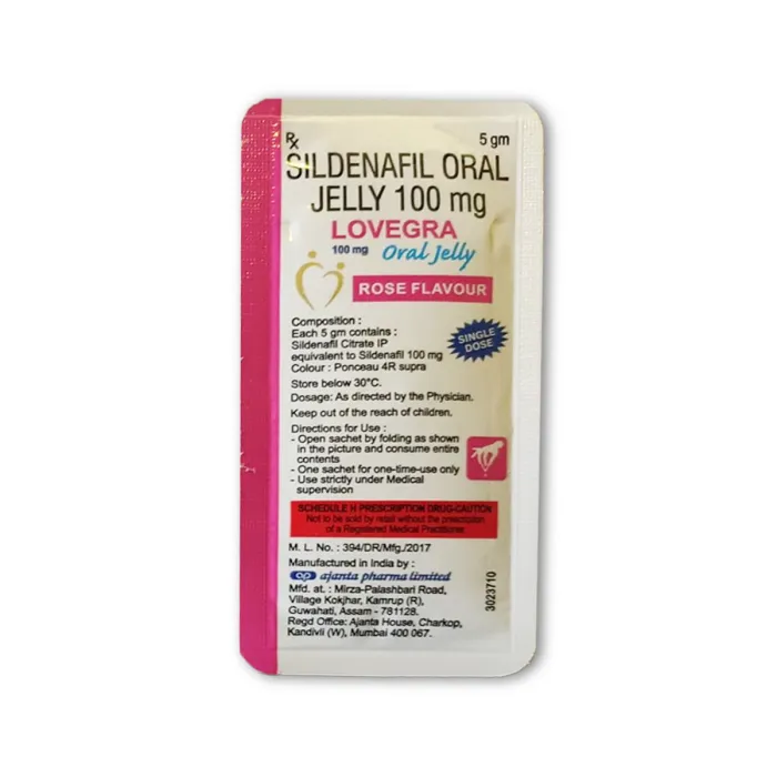 Lovegra Oral Jelly 100 mg is a Sildenafil Citrate formulation designed to treat Female Sexual Arousal Disorder (FSAD). In a fast-absorbing jelly form, it improves blood flow to the genital area, enhancing sensitivity, lubrication, and sexual desire.